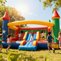 بيع بالجملة في المخزون رخيصة للأطفال حفلة صغيرة مع قلعة نطاطة منزلقة للترفيه للأطفال